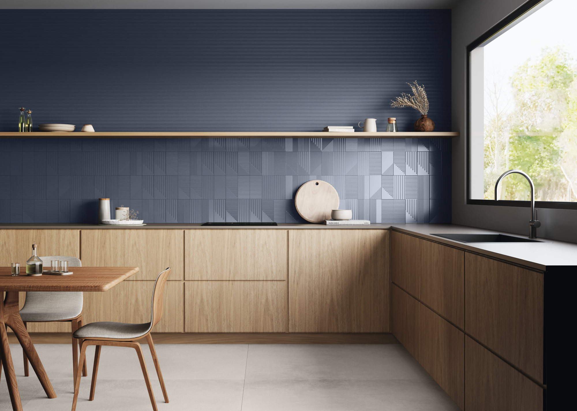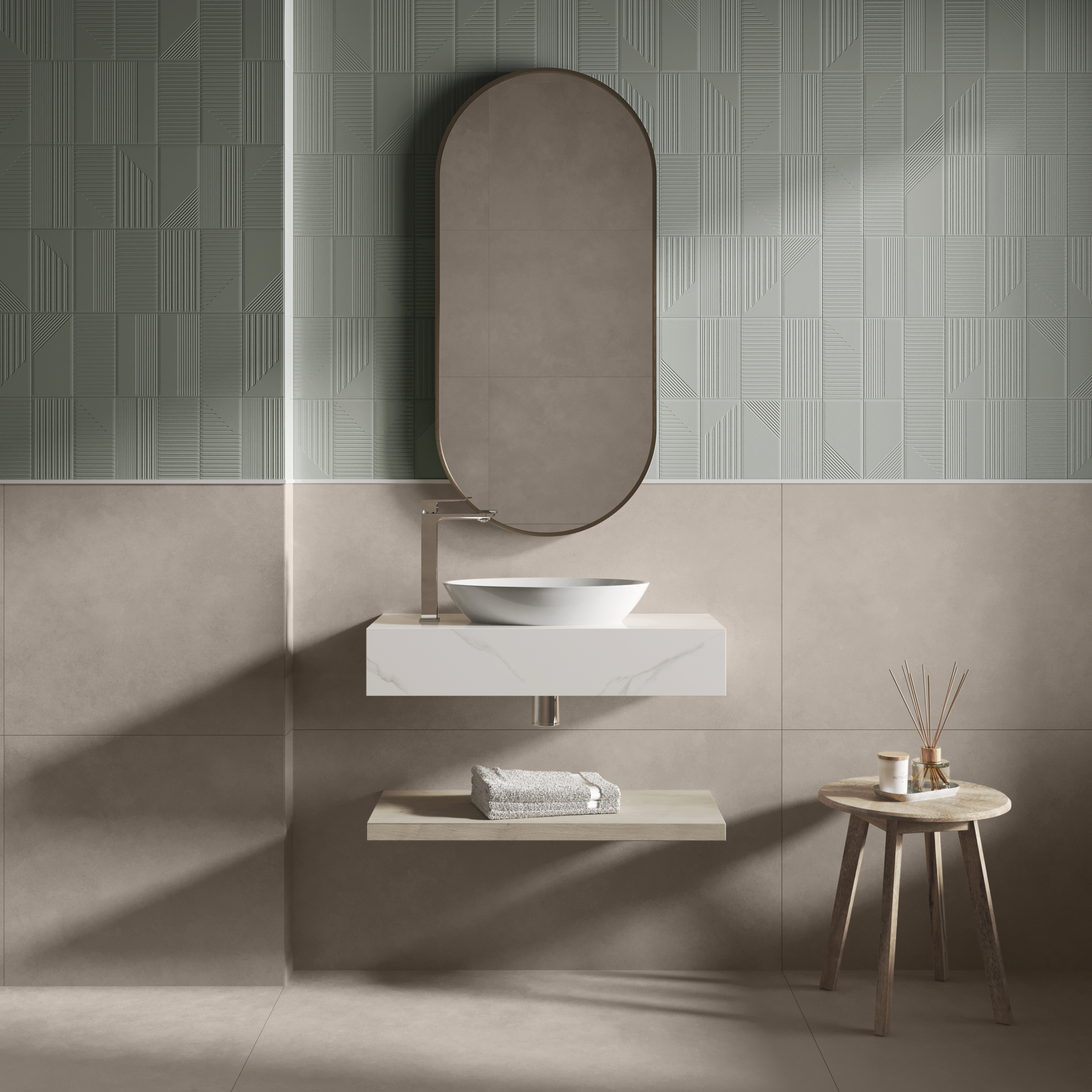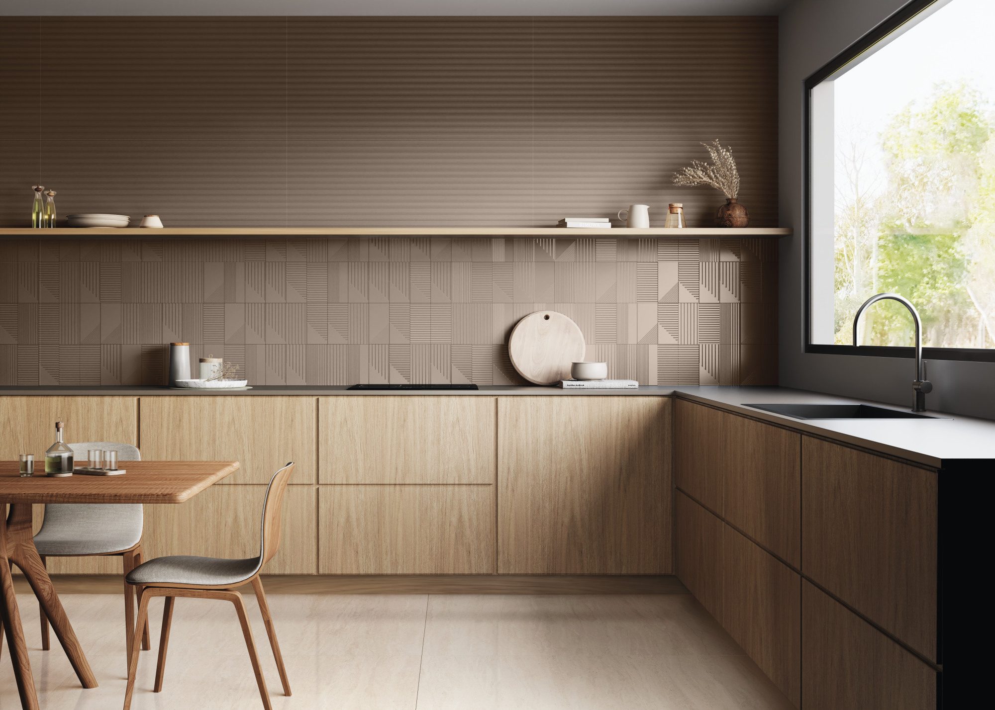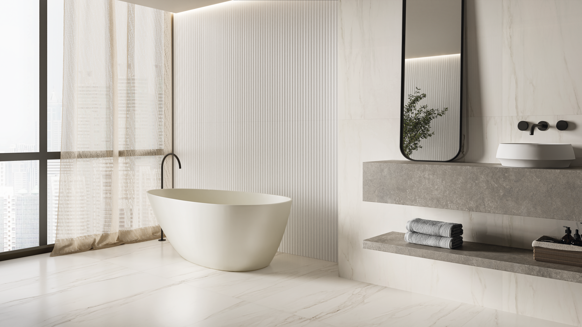 A timeless encounter of monochromatic tones, where versatility is the dominant note and the reliefs are the true protagonists. With long, tapered lines, they connect with all spaces. In a matte finish, the textures awaken a smooth and sophisticated dynamism. And the